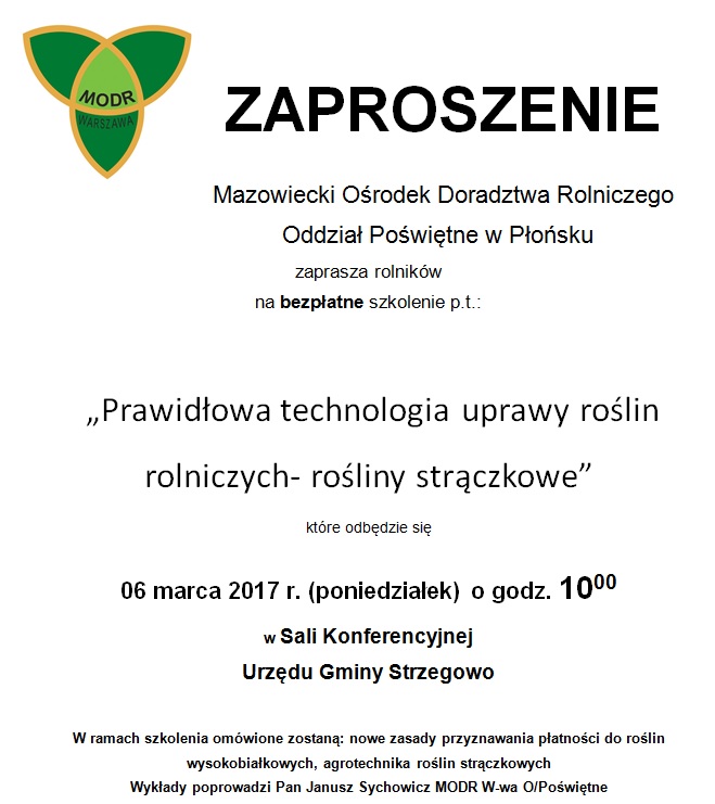 Informacja Wójta Gminy Strzegowo w sprawie organizacji bezpłatnego przewozu...
