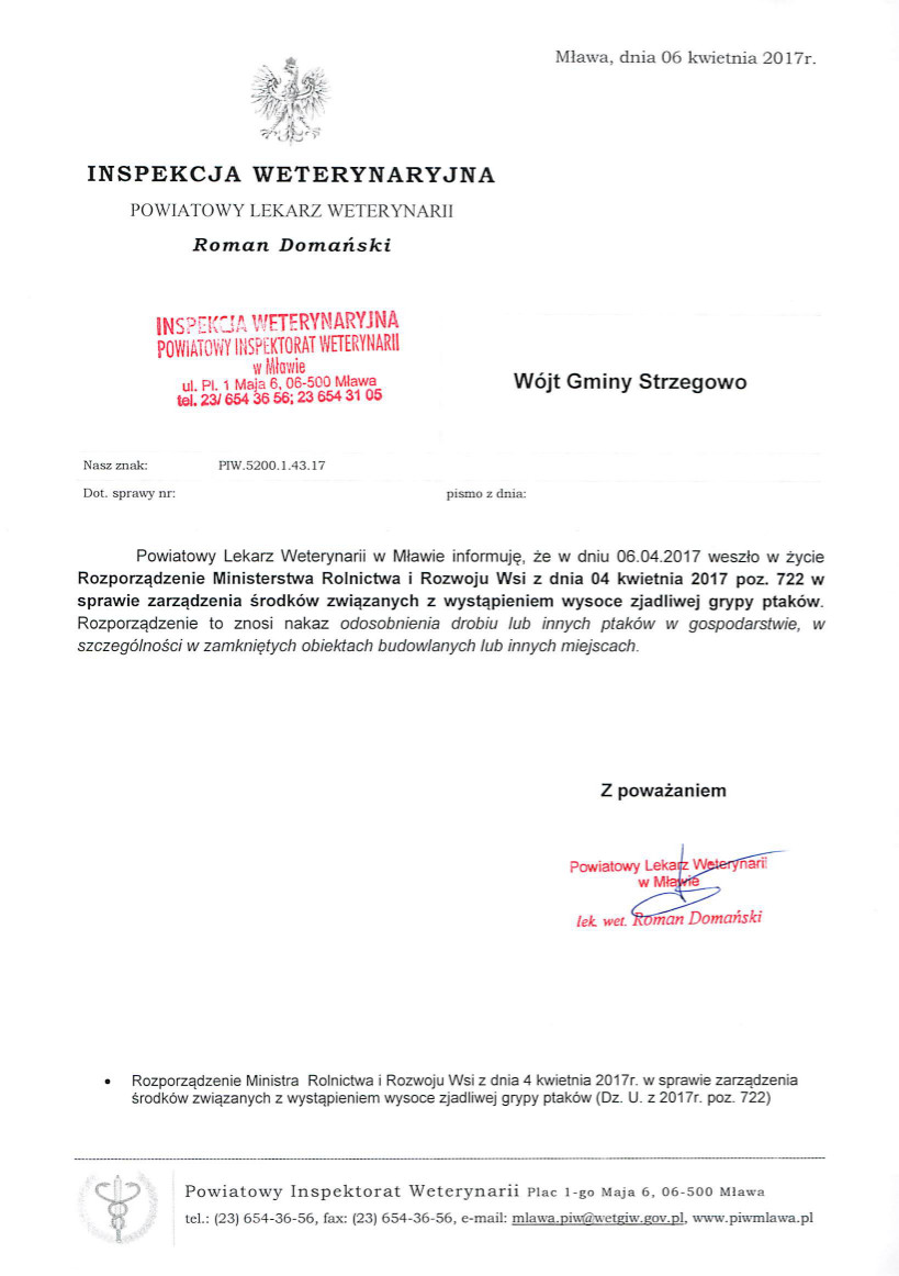 Informacja Wójta Gminy Strzegowo w sprawie organizacji bezpłatnego przewozu...