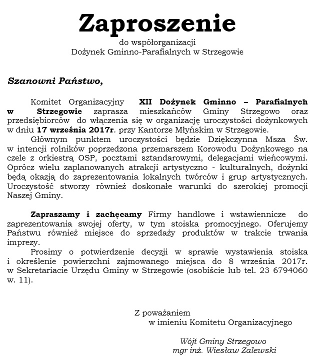 Informacja Wójta Gminy Strzegowo w sprawie organizacji bezpłatnego przewozu...