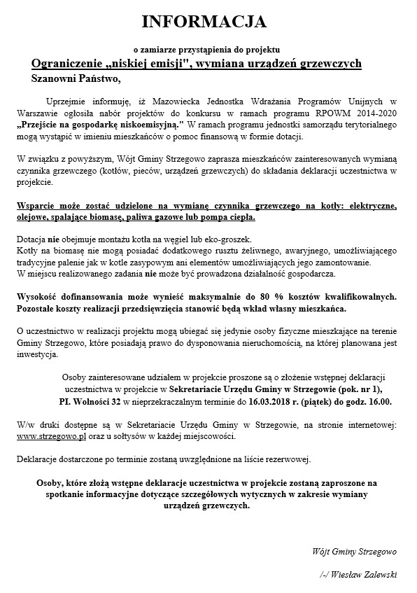 Informacja Wójta Gminy Strzegowo w sprawie organizacji bezpłatnego przewozu...
