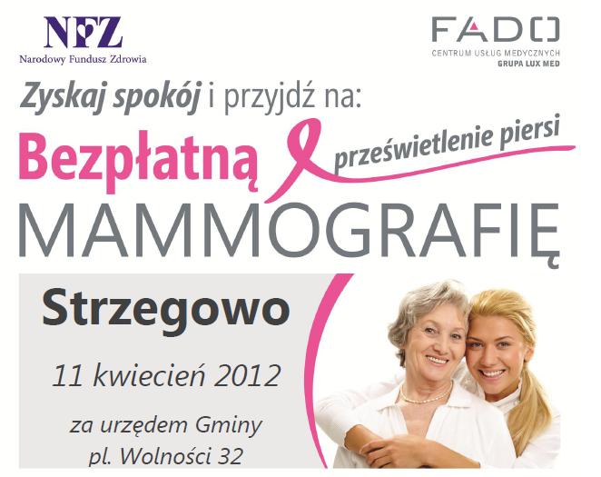 Bezpłatne badanie mammograficzne wykonywane w ramach programu NFZ dla Pań w wieku od 50 do 69 lat.