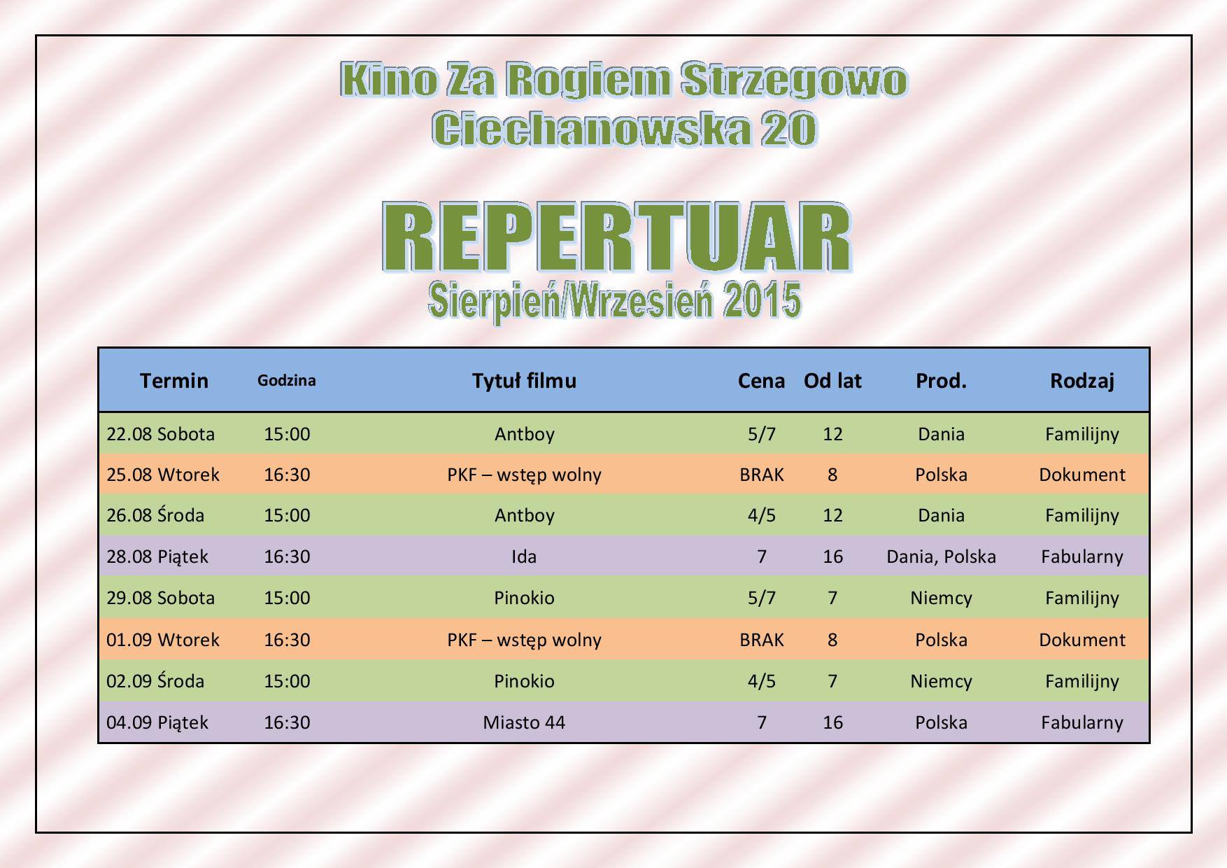 Kino Za Rogiem - repertuar sierpień - wrzesień 2015