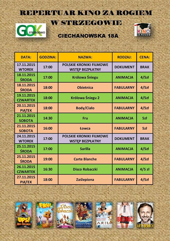 Kino Za Rogiem - repertuar listopad 2015